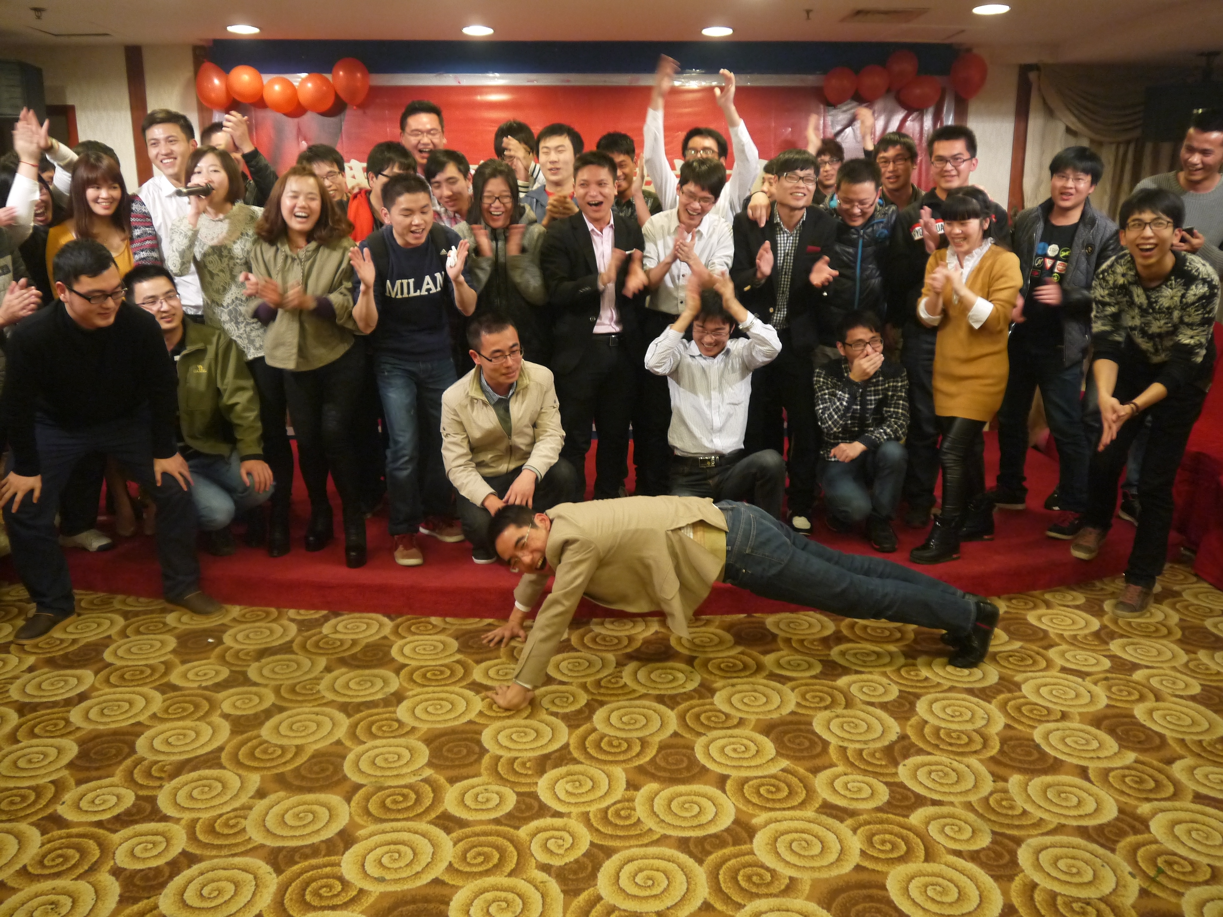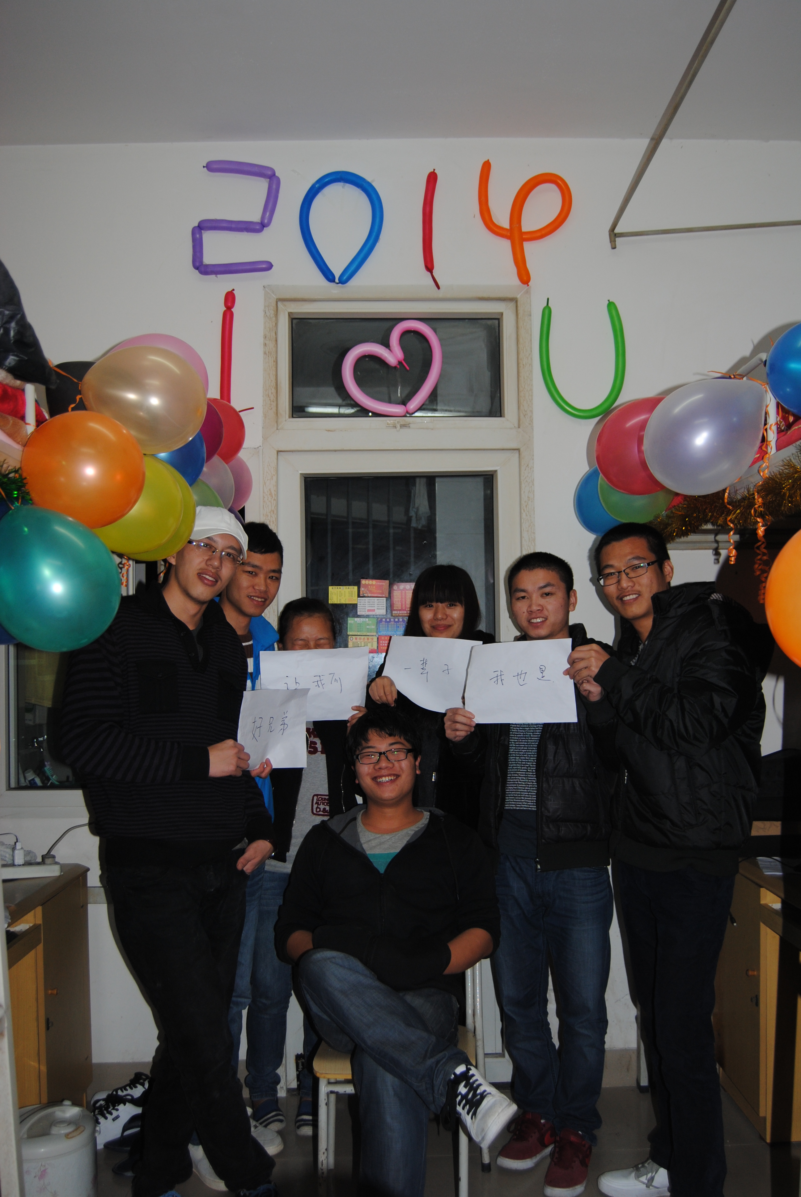 照片是和同学们最后一次的跨年,墙上的气球帮我们记录下了时间。