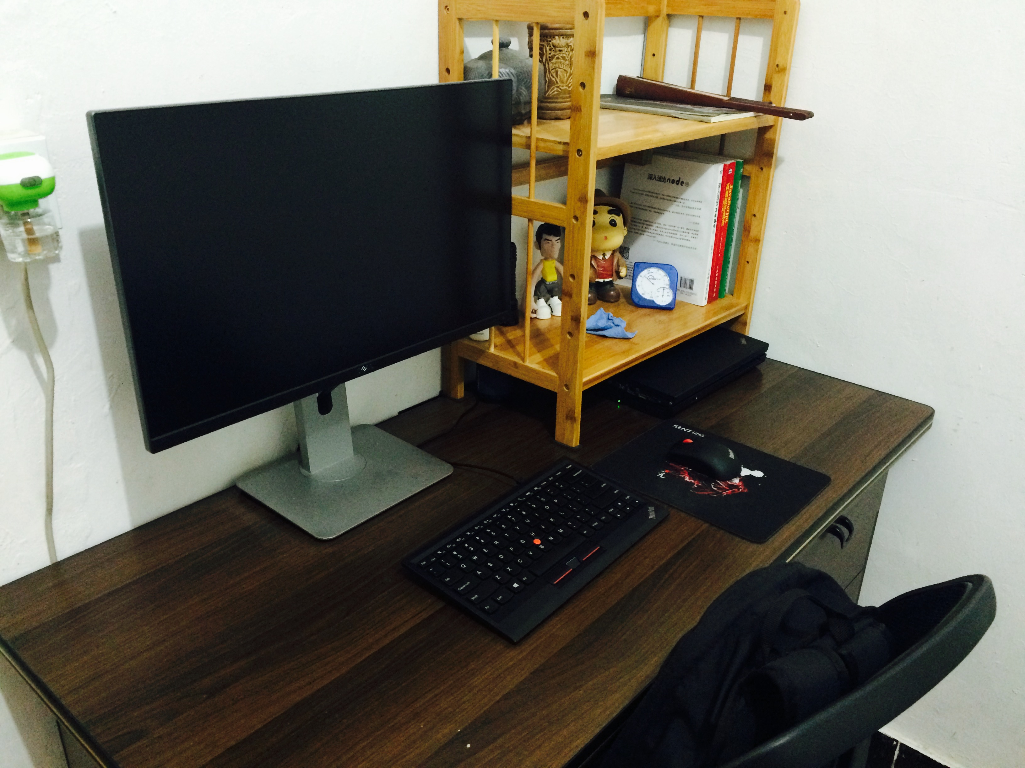 显示器和电脑桌是一定要买,想要很久了,要给自己建造一个舒适的“工作+上网+听歌+聊天”的环境。对了,还需要把这把学校偷来的椅子淘汰掉。厕所也需要一个小小的塑料凳子,蹲着洗衣服太累了,腿都麻了。