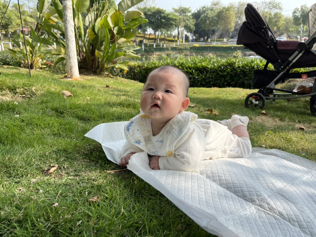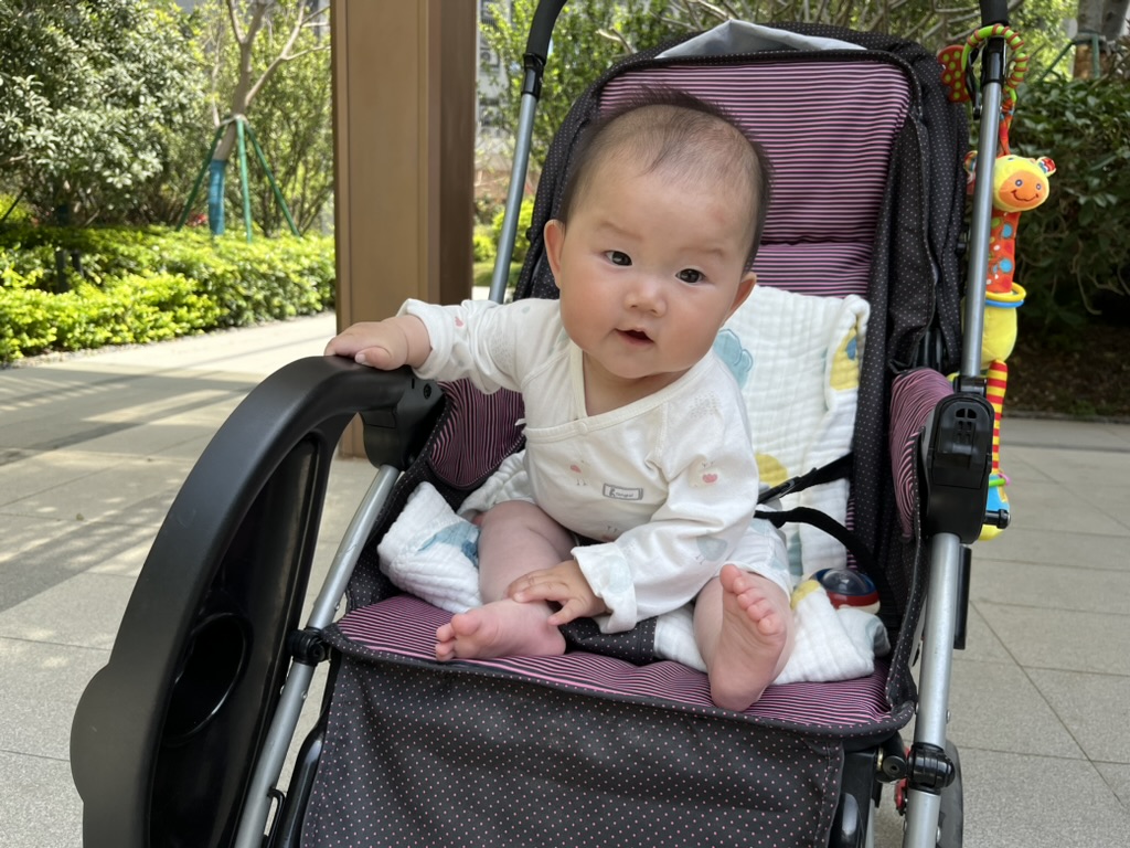 百日之后变化就特别快,也可以方便的带出去玩了。