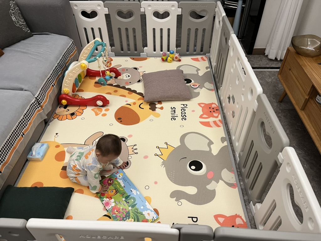 围栏困不住她了,精力充沛,需要释放,满地爬,满头大汗也要爬。