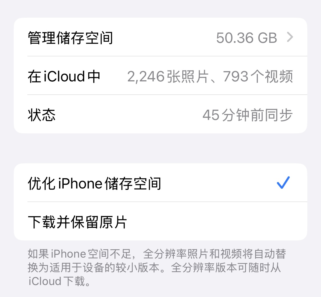 iCloud 有个很好的功能叫「优化 iPhone 存储空间」,它可以让较小的图片资源存在于手机,不影响我们浏览,当我们聚焦到某个照片时,它会从 iCloud 拉取原图。